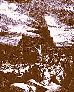 mots. {Nimrod’s Tower was made of words} Tower of Babel The Bible: In the Book of GENESIS, a tower that the descendants of NOAH built. They intended that the tower would reach up to HEAVEN itself, increase their reputation, and make them like God. God prevented them from completing the tower by confusing their language so that they could no longer understand one another’s speech. From that time forward, according to the BIBLE, the peoples of the earth would be scattered, speaking different languages. “Babel” is confusion and noise. –The American Heritage Talking Dictionary (1999).